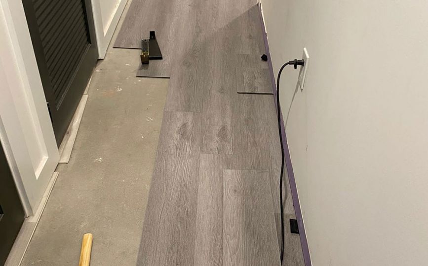Next, we moved on to the most exciting part—the Basement Flooring Install Project. Together with the homeowner, we picked a durable and attractive flooring option. We made sure it was strong enough for high traffic but still added warmth to the space. Before installing, we measured carefully to ensure each plank lined up perfectly. As we laid down the new flooring, the transformation became clear. The room looked bigger, cozier, and ready for everyday living.