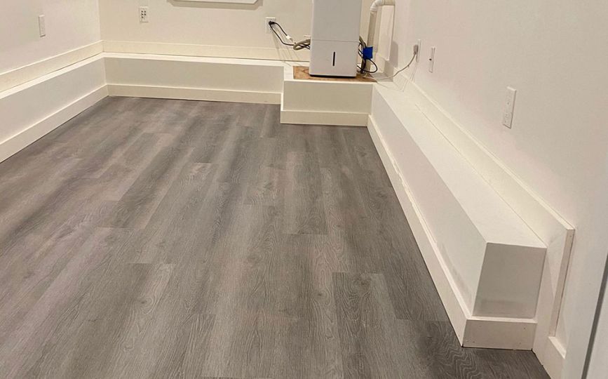 At JF Improvements, we recently completed a Basement Flooring Install Project as part of a full lower-level renovation. This project also included drywall repair and custom trim work. The homeowner wanted the space to feel cleaner, brighter, and more updated. So, from the very beginning, we worked closely together to plan every detail. As a result, the design perfectly matched the home’s overall style.