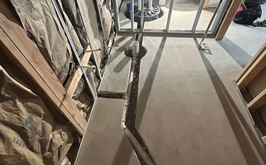 JF Improvements recently completed a full basement restoration for homeowners looking to improve function, flow, and finish in their lower-level living space. We began by rerunning and adding new plumbing to support a more efficient layout. Our crew worked with care to ensure each line aligned with the homeowner’s long-term plans and future upgrades.