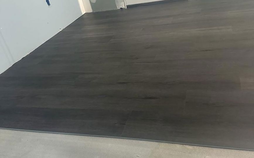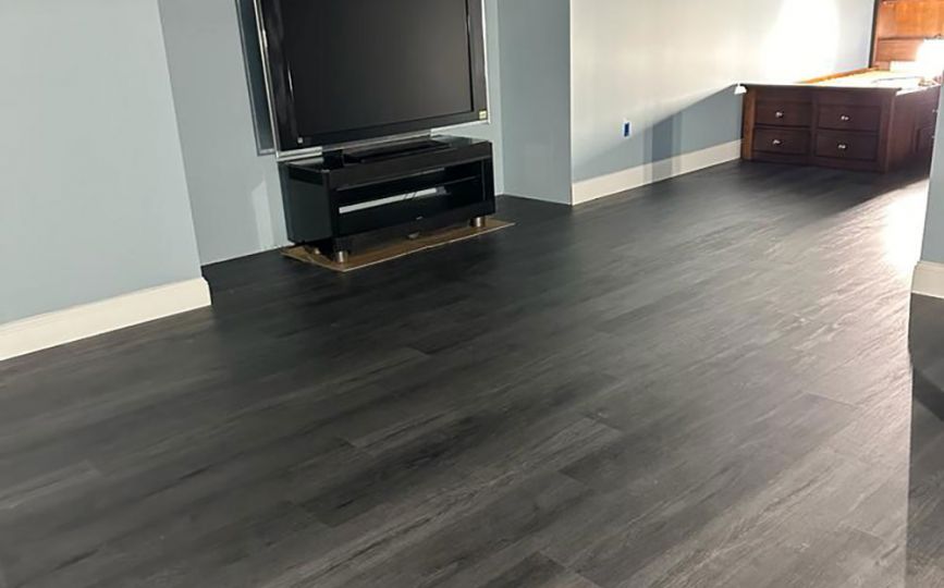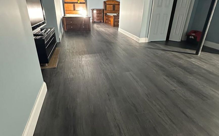 With the ceiling and walls finished, we shifted our attention to flooring. We installed durable linemate flooring that offers comfort and easy maintenance—perfect for a basement for entertaining and daily living. Each plank fits seamlessly, giving the entire level a polished, cohesive feel.