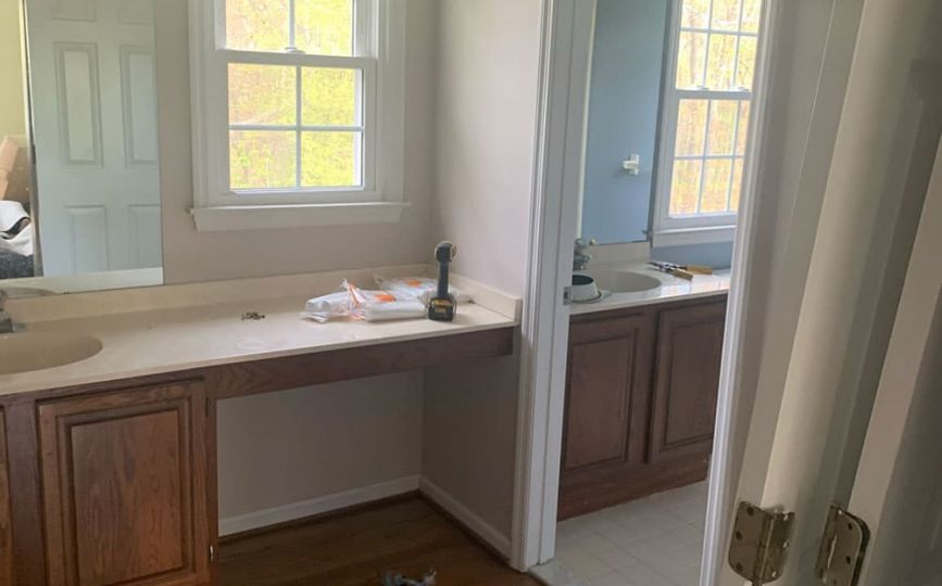 With the new layout in place, we upgraded the plumbing system to ensure it could support the enhanced features and meet today’s efficiency standards. This step not only improved long-term reliability but also allowed for the installation of updated fixtures and a new custom shower. Our experienced team handled all plumbing work with care and precision to ensure proper flow, drainage, and long-term performance. Next, we installed brand-new drywall throughout the space to provide a clean, smooth foundation for painting and tile work. Moisture-resistant materials were used to increase durability, especially in high-humidity areas like the shower and around the vanity. After the drywall, we added stylish, waterproof flooring that brought warmth and visual appeal to the room while standing up to everyday use. The centerpiece of this remodel was the custom shower design, which featured sleek tile, a modern glass enclosure, and updated fixtures. The final result is a bright, spacious bathroom that blends function with style. From structural improvements to fine finishing touches, this project showcases our commitment to craftsmanship and attention to detail—creating a space the homeowners will enjoy for years to come.