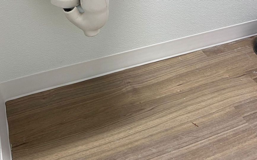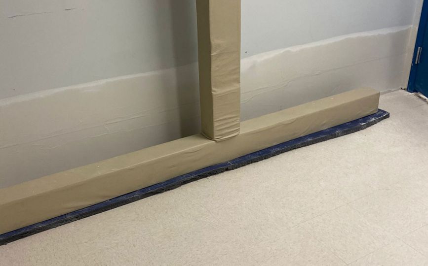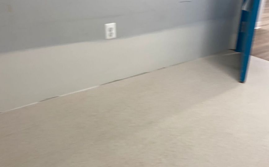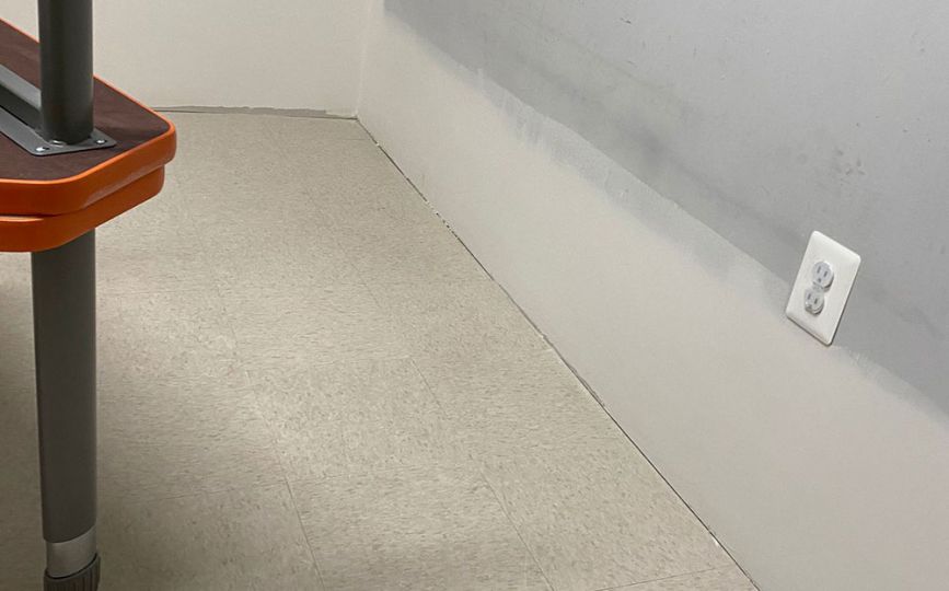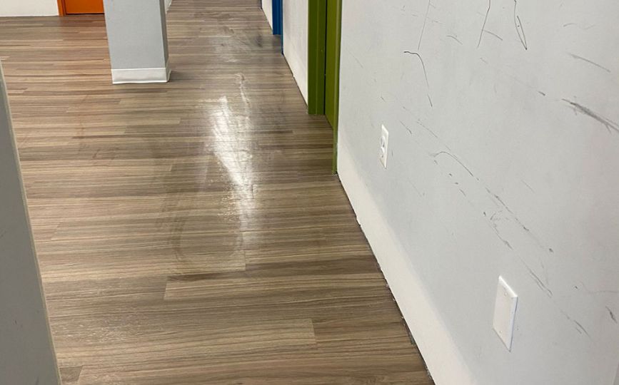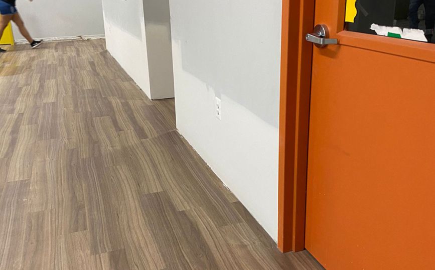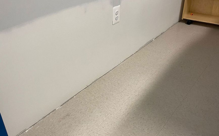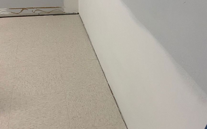 Once the drywall was complete, we added durable vinyl wall coverings. These walls are easy to clean and can handle moisture, which makes them a smart choice for bathrooms—especially in commercial spaces. Even better, the vinyl gave the room a fresh, modern look while adding extra protection against future damage.