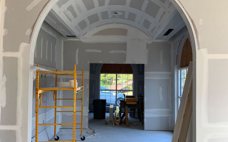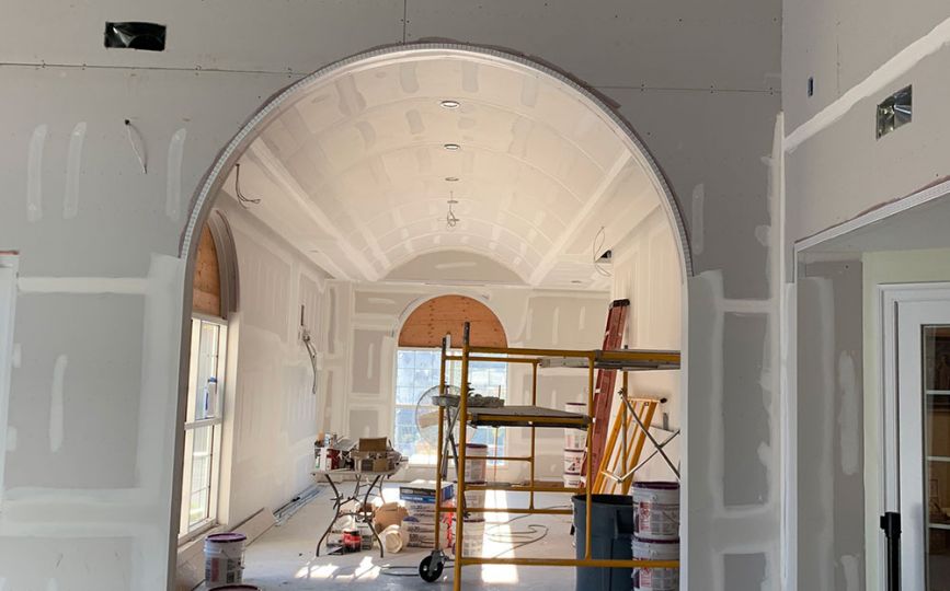 We designed and built several custom arches and a stunning barrel ceiling using TrimTex beads to add elegance and softness to the space. These specialty corner beads allowed us to create beautiful curved finishes that added depth and character while maintaining clean, durable edges. The barrel ceiling, in particular, gave the room a graceful architectural feature that helped elevate the overall design, adding a sense of calm and spaciousness.