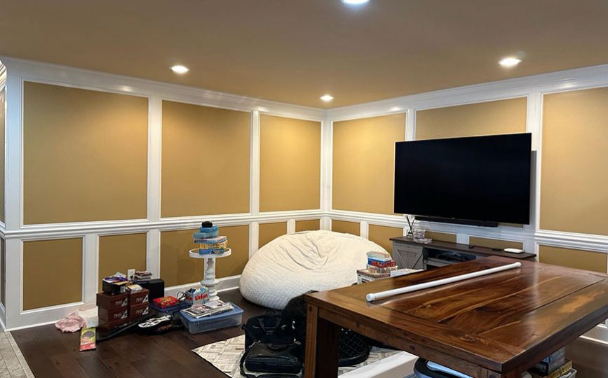 Next, we focused on the walls. After prepping each surface, we applied a rich, modern color that made the room feel both bold and welcoming. The new paint worked beautifully with the center’s furniture and lighting. Because of our even strokes and detailed work, the color looked smooth and bright in every corner.